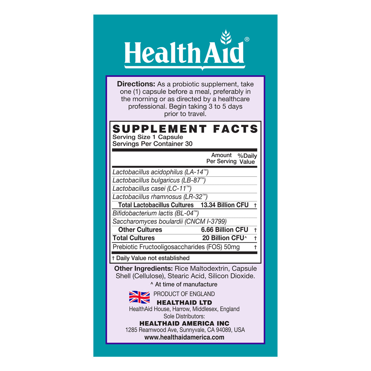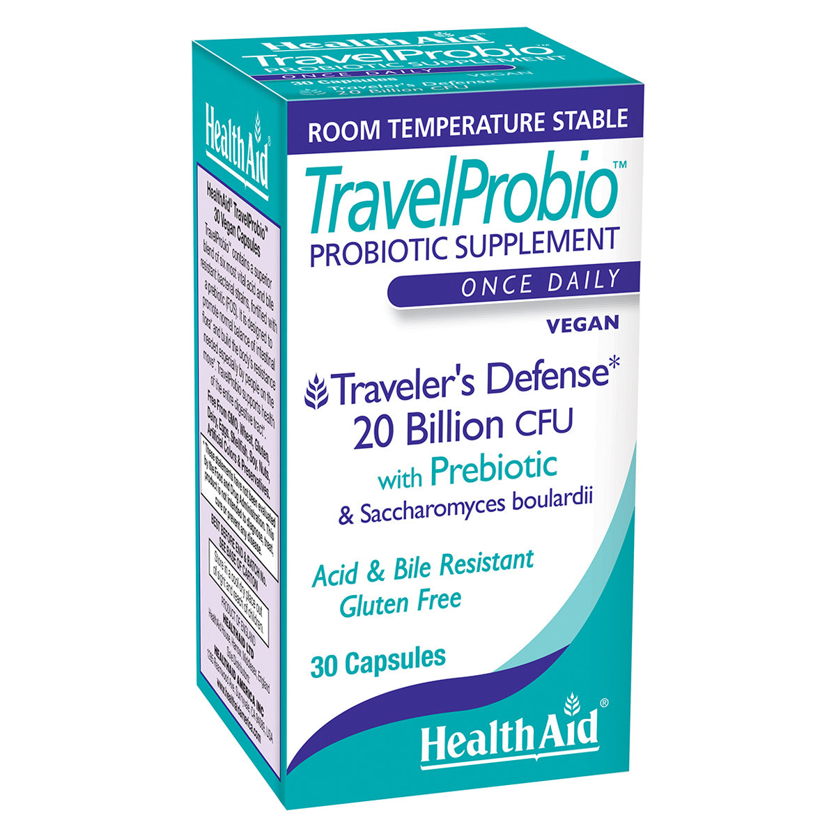 TravelProbio™ contains a superior blend of six most vital acid and bile resistant bacterial strains, fortified with a prebiotic (FOS). It is designed to promote normal balance of intestinal flora* and build the body’s resistance needed especially by people on the move. TravelProbio supports health of the entire digestive tract