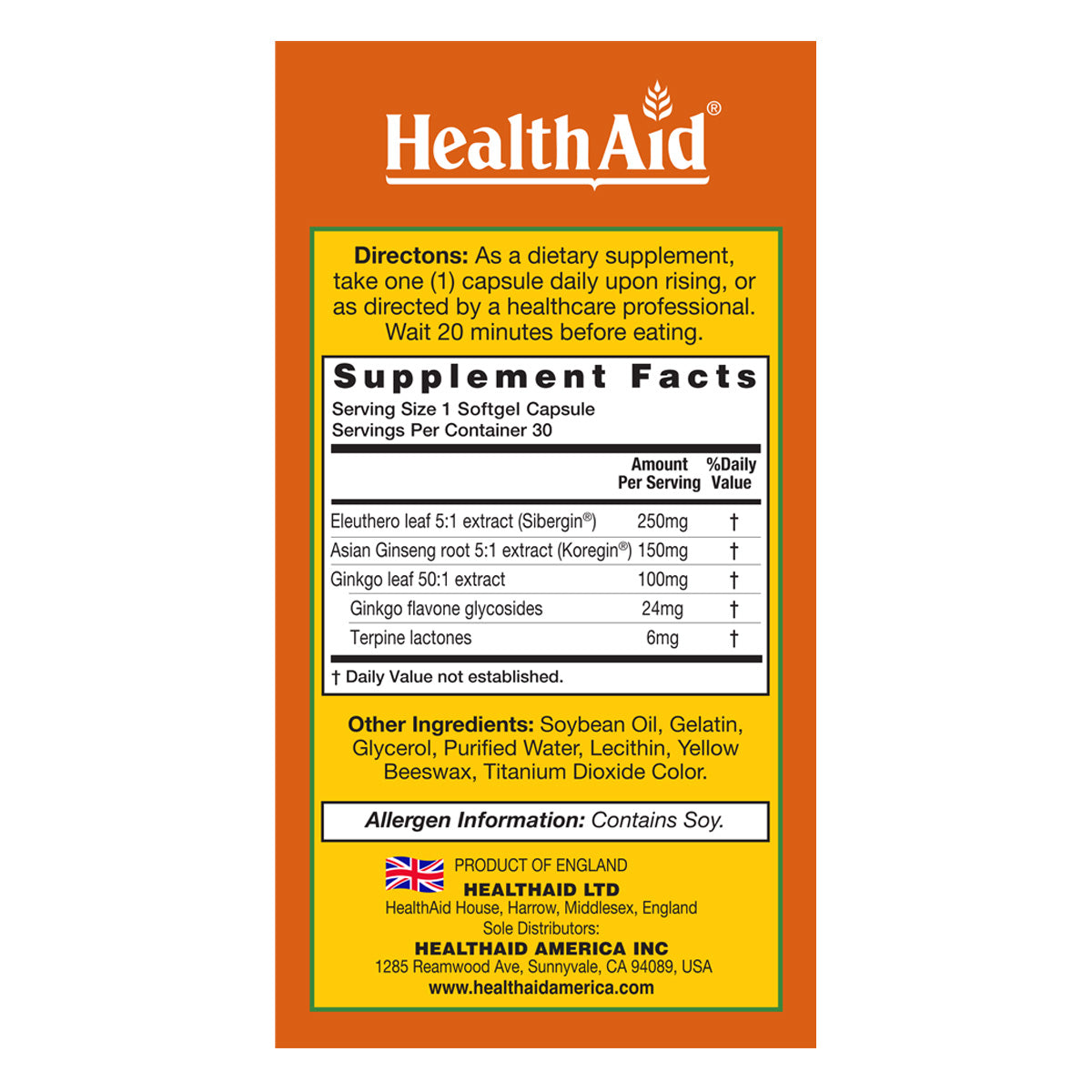 - Combination of Siberian Eleuthero, Korean Ginseng and Ginkgo