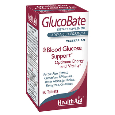 Healthaid Glucobate is specially formulated with herbal extracts such as Karela, Jambolan, and Banaba Leaf with the added benefits of Vitamin C, Niacin, Vitamin B6 and B12 to help support normal blood glucose levels.
